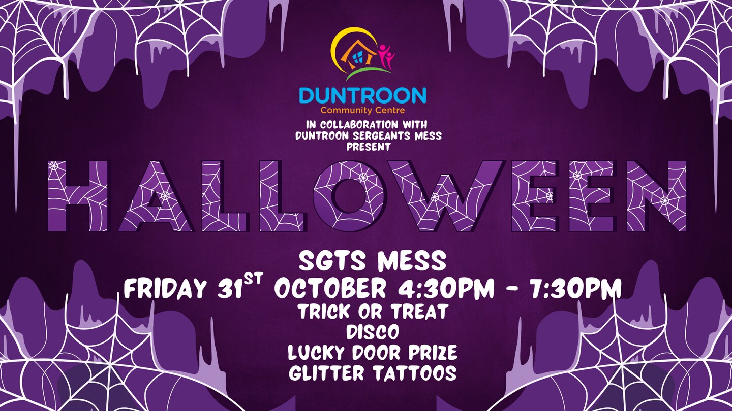 Please email coordinator@duntrooncommunitycentre.org.au so we can mark your house on our trick or treating map!