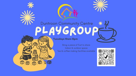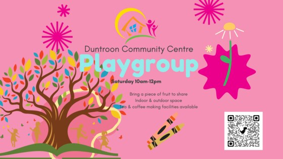 We are excited to run our volunteer facilitated Playgroup on Tuesday mornings (10am-12noon) and the 1st Saturday of the month (10am-12noon), during the ACT school terms. Playgroup is for children (0-5 years of age) and their carers, On Saturday we welcome school aged children to take part with their families. Our facilities include indoor and outdoor play areas, organised craft activities and/or sensory play by a volunteer facilitator and access to coffee making facilities in the kitchen. Please bring along a peice of fruit for your child to eat/share for morning tea. We are strictly a nut free and smoke free zone. Session times 10.00am to 12.00pm.  If you are having trouble booking in to Playgroup it may be because you are not signed in using your email address as a current member or you may not have joined as a member. Free members can come to two core programs first before signing up as a VIP member for the year. You can sign up for a membership here: https://duntrooncommunitycentre.tidyhq.com/member/memberships If you would like further information, or you are having trouble registering for Playgroup, please contact the Centre Coordinators Carmel and Jane via email admin@duntrooncommunitycentre.org.au