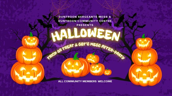 🎃 Join the Halloween Fun! 🎃 Light Up & Decorate Your Home or Business! 👻 Get into the Spirit of Halloween! 👻 We invite all houses and businesses to join us in creating a spooktacular Halloween atmosphere by placing a light on and decorating your property. Let your community know you're participating in the festivities! Who: All local Duntroon Community Members including residents and all familes who are connected to Duntroon via work or service.  Where: Where: RMC Sergeants Mess, Coombes Road, Campbell, Cnr Chumleigh Close Where: Kicks off at 4.30pm for trick and treating with celebrations from 5.30pm-7pm at the SGT's Mess (all welcome. Why Participate? Create a Festive Atmosphere: Make our neighborhood look magical and spooky! Community Engagement: Bring joy and excitement to trick-or-treaters and neighbors. Show Your Creativity: Have fun designing and showcasing your Halloween spirit. How to Participate **Light Up**: Place a visible light or lantern in front of your property. **Decorate**: Add Halloween decorations such as pumpkins, cobwebs, skeletons, and more. **Enjoy**: Watch as your efforts bring delight to all who see! Dress up for Trick or Treating. Trick or Treaters bring a bag of sweets to give to a neighbourhood house who is particpating to thank them and assist with the cost of candy for the evening.     Special Invitation for after Trick or Treating 6pm-8pm   Don’t forget to stop by the SGT’s Mess for some surprise fun! All community members welcome. Face painting, disco music, lucky door prize and spooky snacks!  **For More Information: Contact Duntroon Community Centre during office hours www.duntrooncommunitycentre.org.au Thank you for helping us make this Halloween unforgettable! Please consider registering so we can identify the number of families attending on the night.
